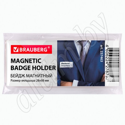 Горизонтальный бейдж-табличка BRAUBERG MAGNETIC для именных карточек. Безопасное и надежное крепление на двух магнитах.