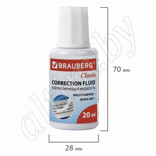 Корректирующая жидкость BRAUBERG обеспечивает аккуратное исправление печатного или рукописного текста.