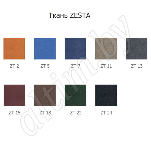 Спинка выполнена из эластичной "дышащей" сетки. Широкое сиденье обито тканью ZESTA (см. схему).
