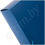 Материал - плотный пластик, толщина - 0,7 мм. Цвет - синий. Надёжные угловые резинки. Короб с шириной корешка 30 мм вмещает 280 листов бумаги плотностью 80 г/м2. Короб с шириной корешка 50 мм вмещает 480 листов бумаги плотностью 80 г/м2.