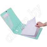 Надежный металлический хромированный механизм. Механизм фиксации папки в сложенном виде с помощью цветных резинок и стильной пластиковой застежки черного цвета.