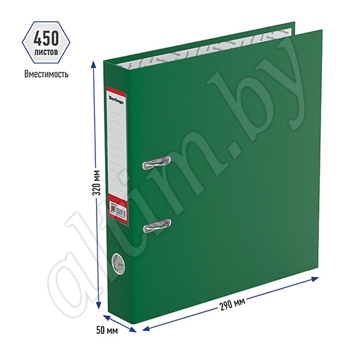 Ширина корешка 5 см. Размер 320*290 мм. Вмещает до 450 листов бумаги плотностью 80 г/м2.