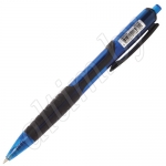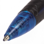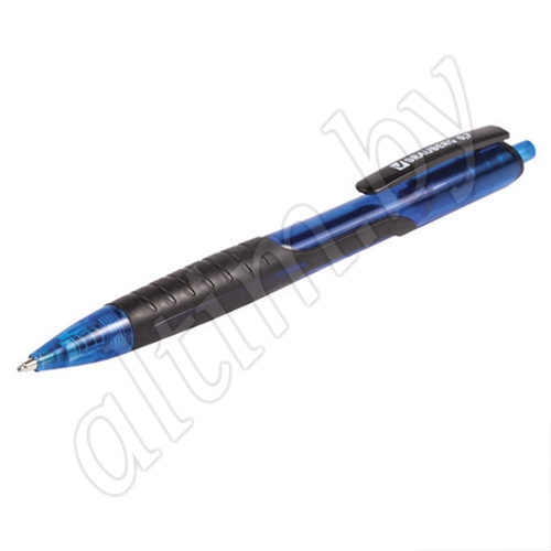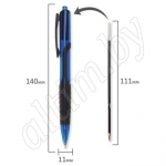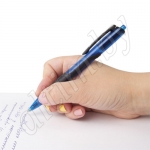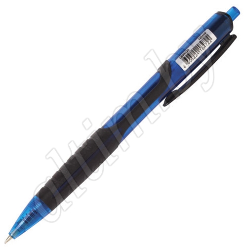 Имеет круглый корпус синего цвета с прорезиненными вставками и резиновым грипом в зоне захвата для удобства письма.