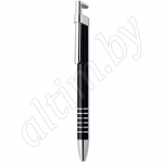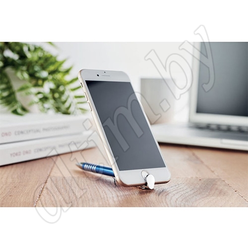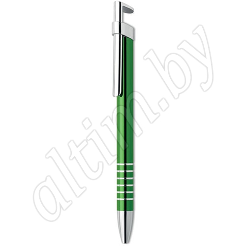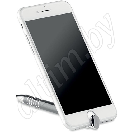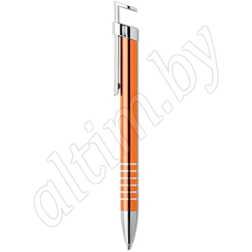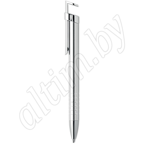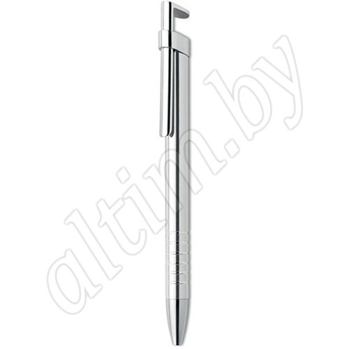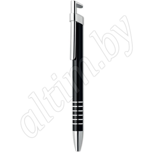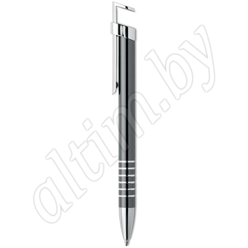 Шариковая ручка с нажимным механизмом подачи стержня и встроенной подставкой для гаджетов.