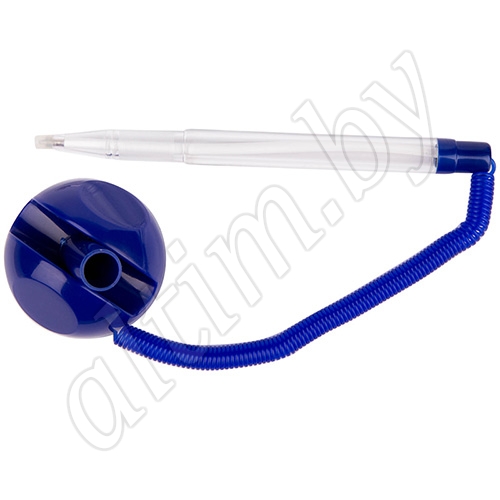 Настольная шариковая ручка на подставке. Подставка с регулируемым углом наклона ручки для более удобного использования. Подставка фиксируется на ровной поверхности с помощью клейкого основания.