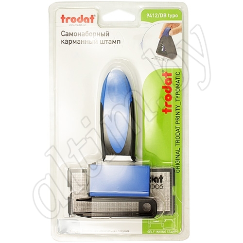 В комплект входят: прочная пластиковая оснастка с прямоугольной рифленой пластиной, встроенная сменная подушка синего цвета, пинцет, касса символов 6005 (русский алфавит) высотой 3,1 и 2,2 мм.