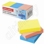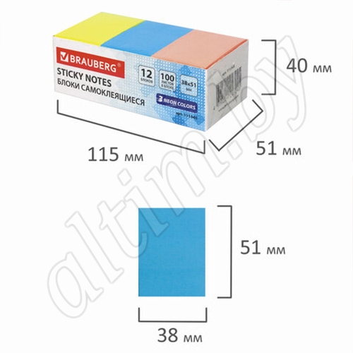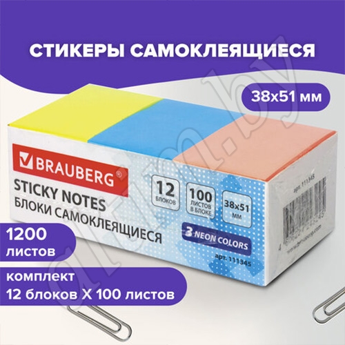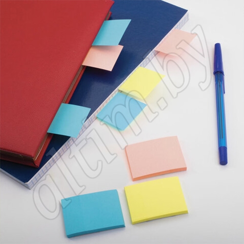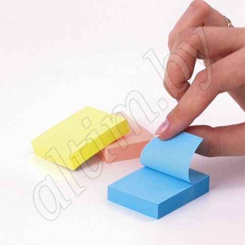 Бумага для заметок с клейкой полосой 3 неоновых цветов (желтый, розовый, голубой) в форме прямоугольника 38х51 мм.