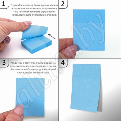 - отделяйте листы от блока вдоль клеевой полосы в горизонтальном направлении - это поможет избежать скручивания и последующего отклеивания стикера;
