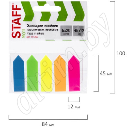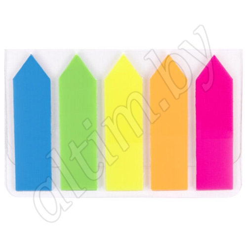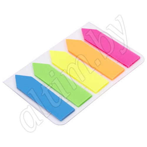 Набор пластиковых закладок 5 неоновых цветов размером 45х12 мм состоит из 100 листов, по 20 закладок каждого цвета. Клейкий слой - 22 Н/м.