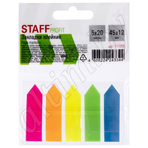 Яркие пластиковые полупрозрачные закладки STAFF в виде стрелок акцентируют внимание на важных страницах книги, журнала, каталога и др.