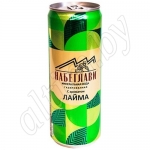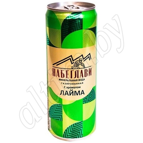 Вода минеральная газированная с ароматом лайма расфасована в жесть-банку объемом 0,33л.