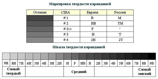 Твердость грифеля указывается производителем на карандаше и обозначается буквами: