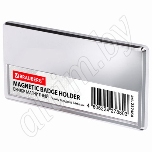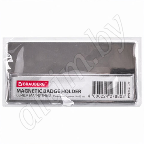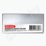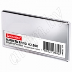 Горизонтальный бейдж-табличка BRAUBERG MAGNETIC для именных карточек. Безопасное и надежное крепление на двух магнитах. Для именной карточки предусмотрено специальное окошко, открываемое с помощью технического отверстия на задней стороне бейджа.