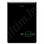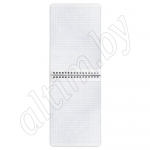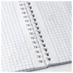 Блокнот формата А5 на евроспирали содержит 80 листов с линовкой в клетку, что позволяет зафиксировать большой объем нужной информации и дает возможность аккуратно заполнить цифровые значения, а также нанести чертежные зарисовки. Гребень расположен сверху. Обложка выполнена из мелованного картона плотностью 190 г/м2. Внутренний блок состоит из белой офсетной бумаги плотностью 60 г/м2.