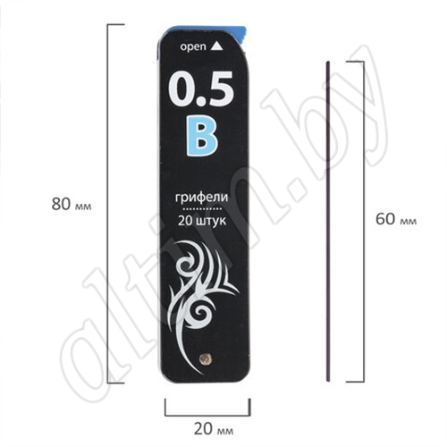 Диаметр грифеля: 0.5 мм. Длина грифеля: 60 мм. Количество в комплекте: 20 стержней.