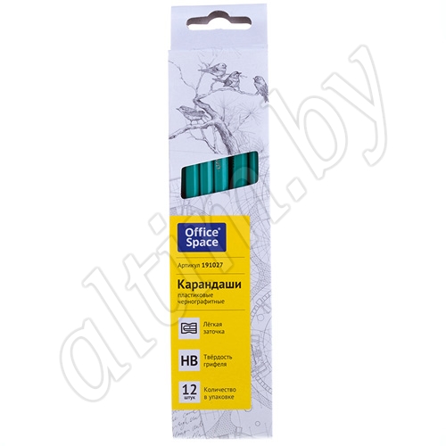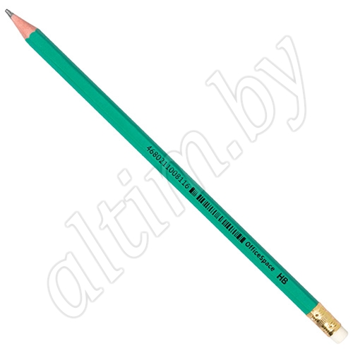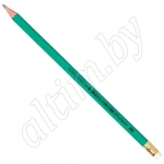 Пластиковый чернографитный карандаш. Зеленый корпус. Форма корпуса шестигранная.