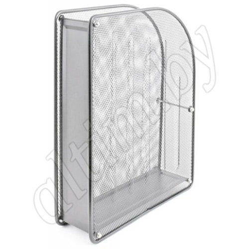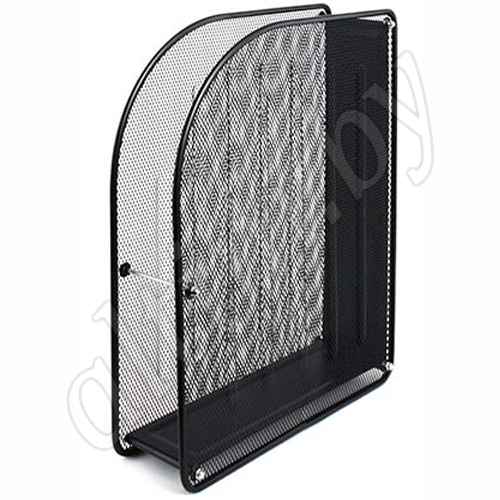 Подставка для бумаг формата А4 выполнена из металла. Боковые стенки - перфорированный металл (металлическая сетка).