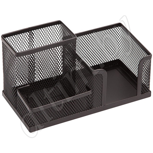 Стильная и практичная металлическая подставка-органайзер для хранения канцелярских принадлежностей. Упакована в лакированную коробку. Имеются мягкие подушечки на дне, предотвращающие скольжение и повреждения поверхности.