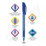Шариковая ручка с трехгранным прорезиненным корпусом. Технология мягкого письма "FEEL INK". Специальные масляные чернила ультрапониженной вязкости синего цвета гарантируют лёгкое и четкое письмо без каких-либо усилий, а также надежный пишущий узел, диаметр которого 0,7 мм, обеспечивает непревзойденно мягкое и комфортное письмо и тонкую линию равную, 0,35 мм.