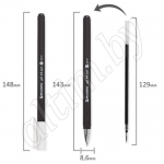 Имеет круглый корпус, который выполнен в цвет черных чернил. Сменный стержень длиной 129 мм со стандартным наконечником позволит использовать ручку максимально долго.
