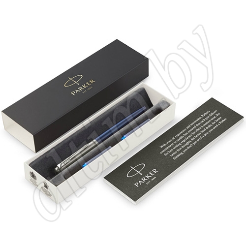 Все перьевые ручки Parker Jotter поставляются в новой подарочной коробке в комплекте с двумя картриджами синего цвета.