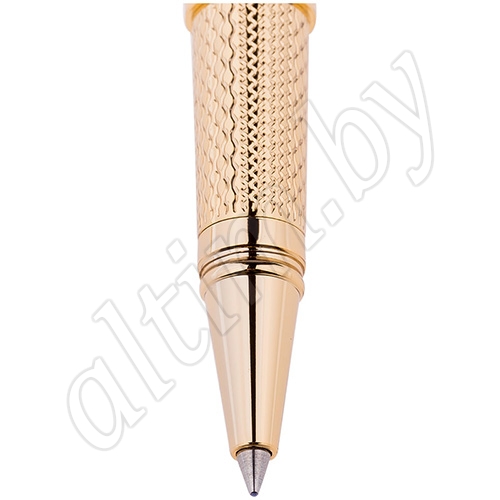 Ручка роллер поможет подчеркнуть стиль их обладателей. Цвет корпуса золотистого цвета, с рифлением. Оригинальный клип, изящная гравировка.