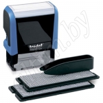 В комплект входят: прочная пластиковая оснастка с прямоугольной рифленой пластиной, встроенная сменная подушка синего цвета, пинцет, кассы символов 6005 и 6006 высотой 3,1 и 2,2 мм.