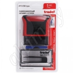 В комплект входят: прочная пластиковая оснастка с прямоугольной рифленой пластиной, встроенная сменная подушка синего цвета, пинцет, кассы символов 6005 и 6006 высотой 3,1 и 2,2 мм.