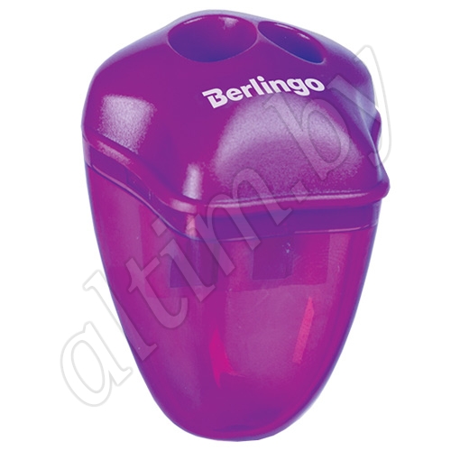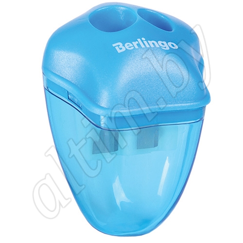 Точилка эргономичной формы с цветным прозрачным пластиковым контейнером для сбора стружки.